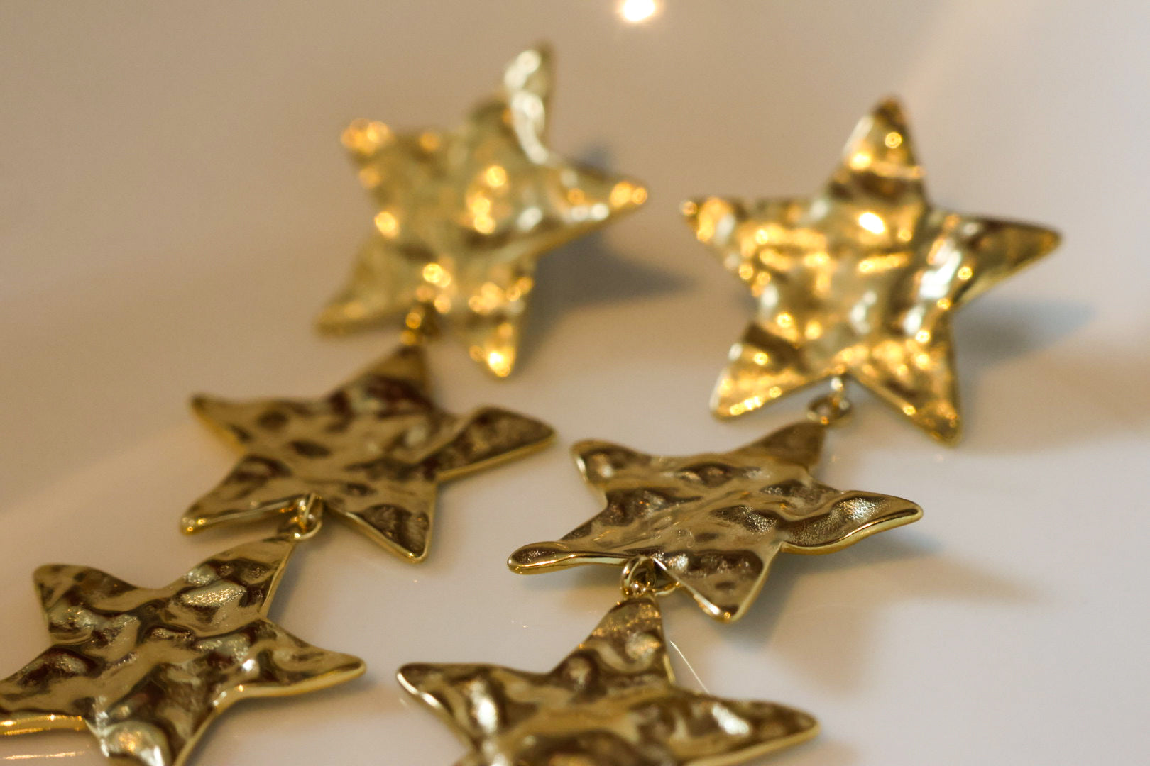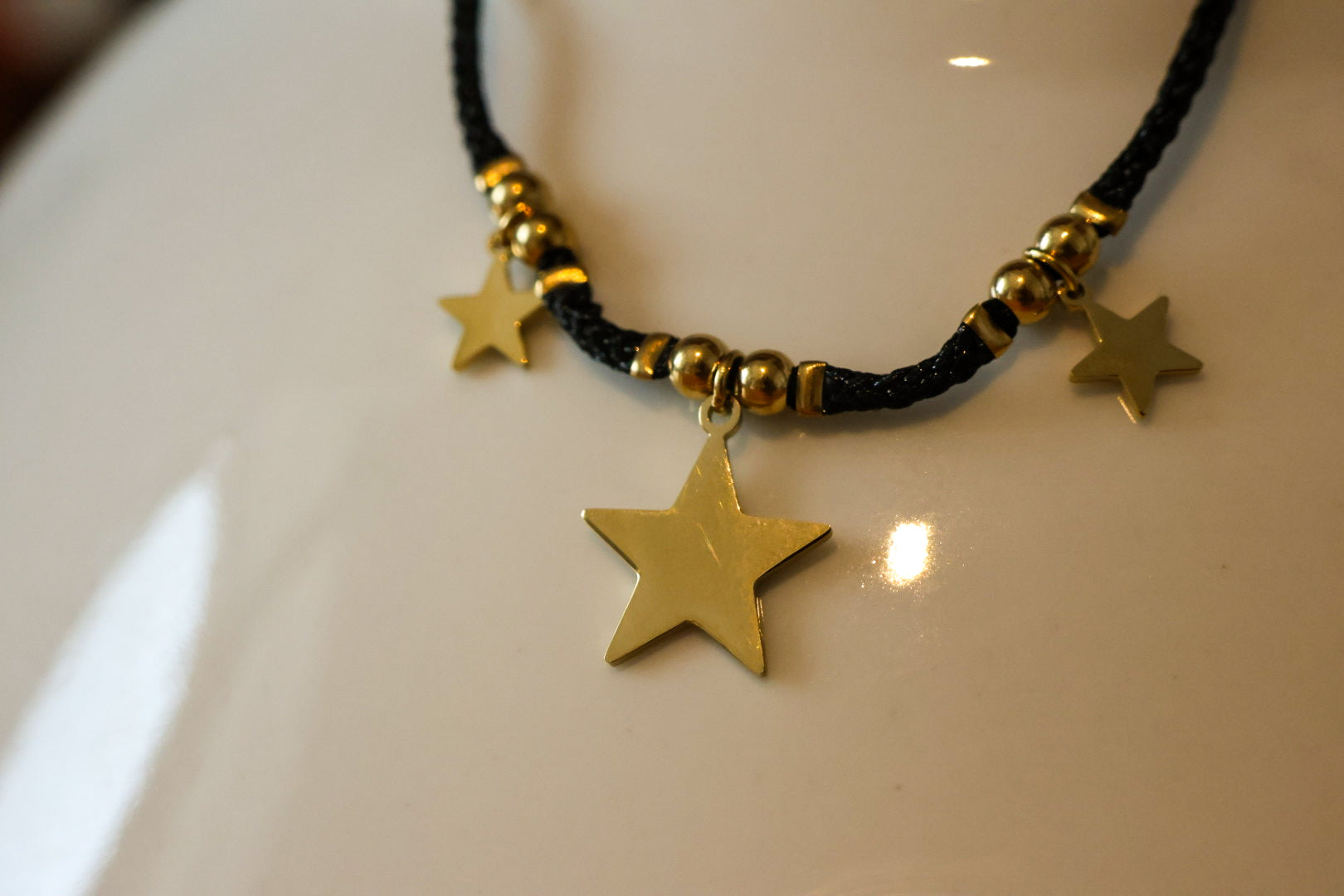 Dieses exklusive Schmuck-Set vereint vier auffällige Highlights in einem harmonischen Bundle: ein schwarzer Choker mit goldfarbenen Stern-Anhängern, markante Statement-Ohrringe in Sternform, ein Ring in Goldoptik mit grünem Stein im Strahlen-Design sowie ein detailreiches Herz-Armband. Zusammen getragen entsteht ein moderner, ausdrucksstarker Look – designed, um Blicke auf sich zu ziehen.✨